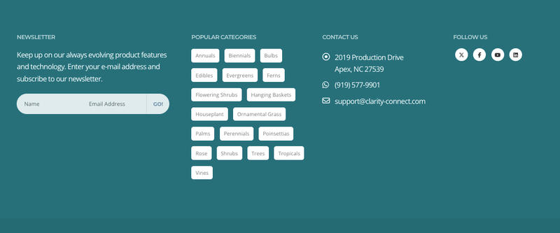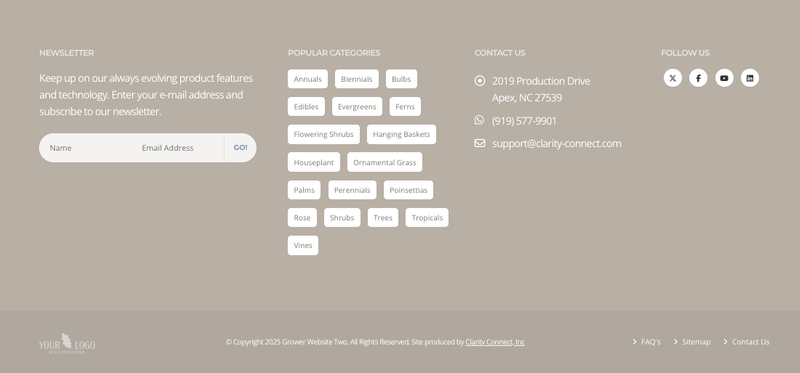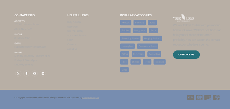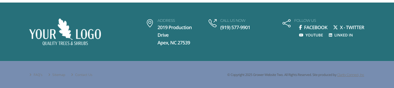Some of the headers and footers update based on the colors you select for your website. All of the following header and footer examples are based on this color scheme. Some color combinations do not provide enough contrast. In these situations, it is best to choose a different header or footer. A good example is Footer 3 shown below.